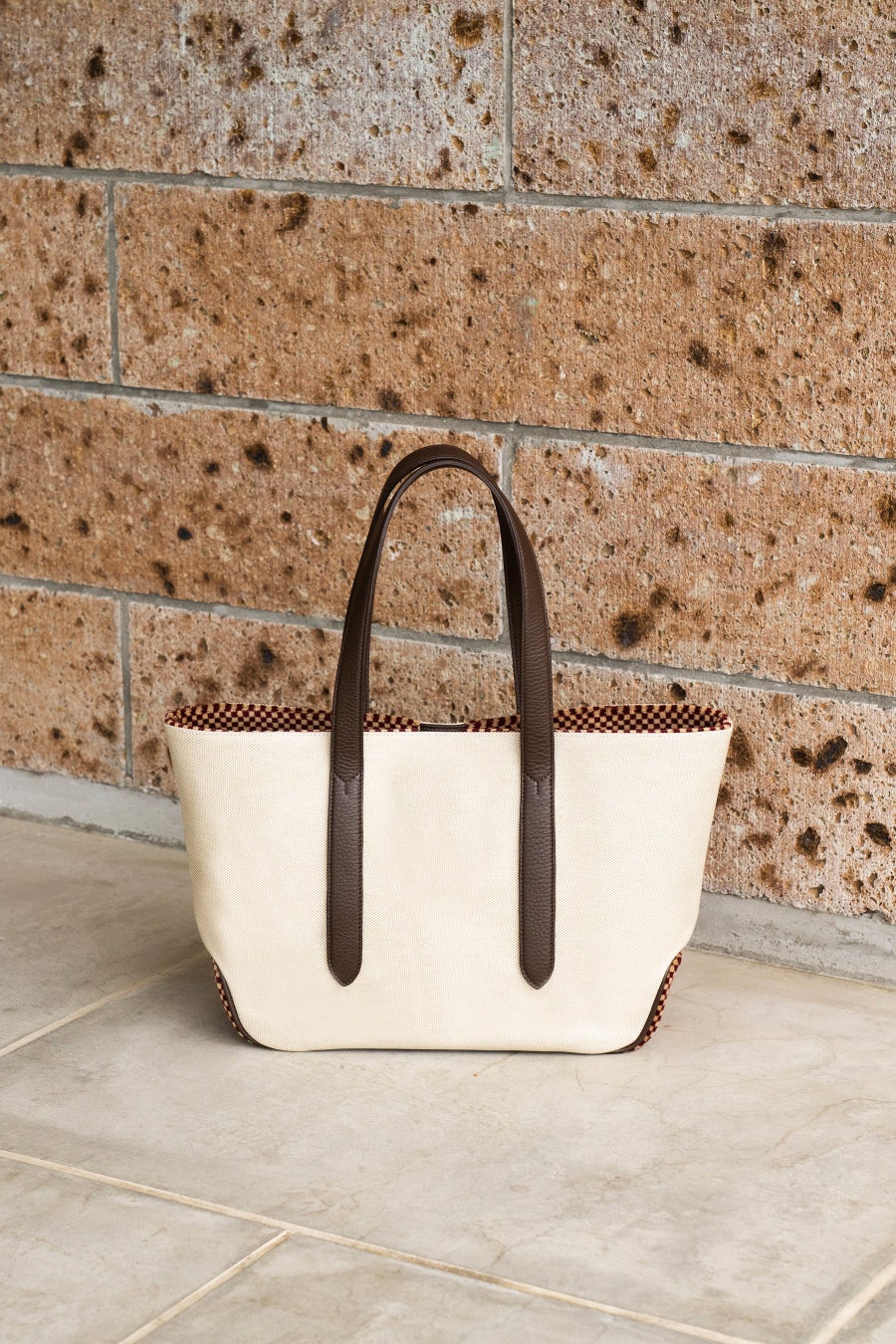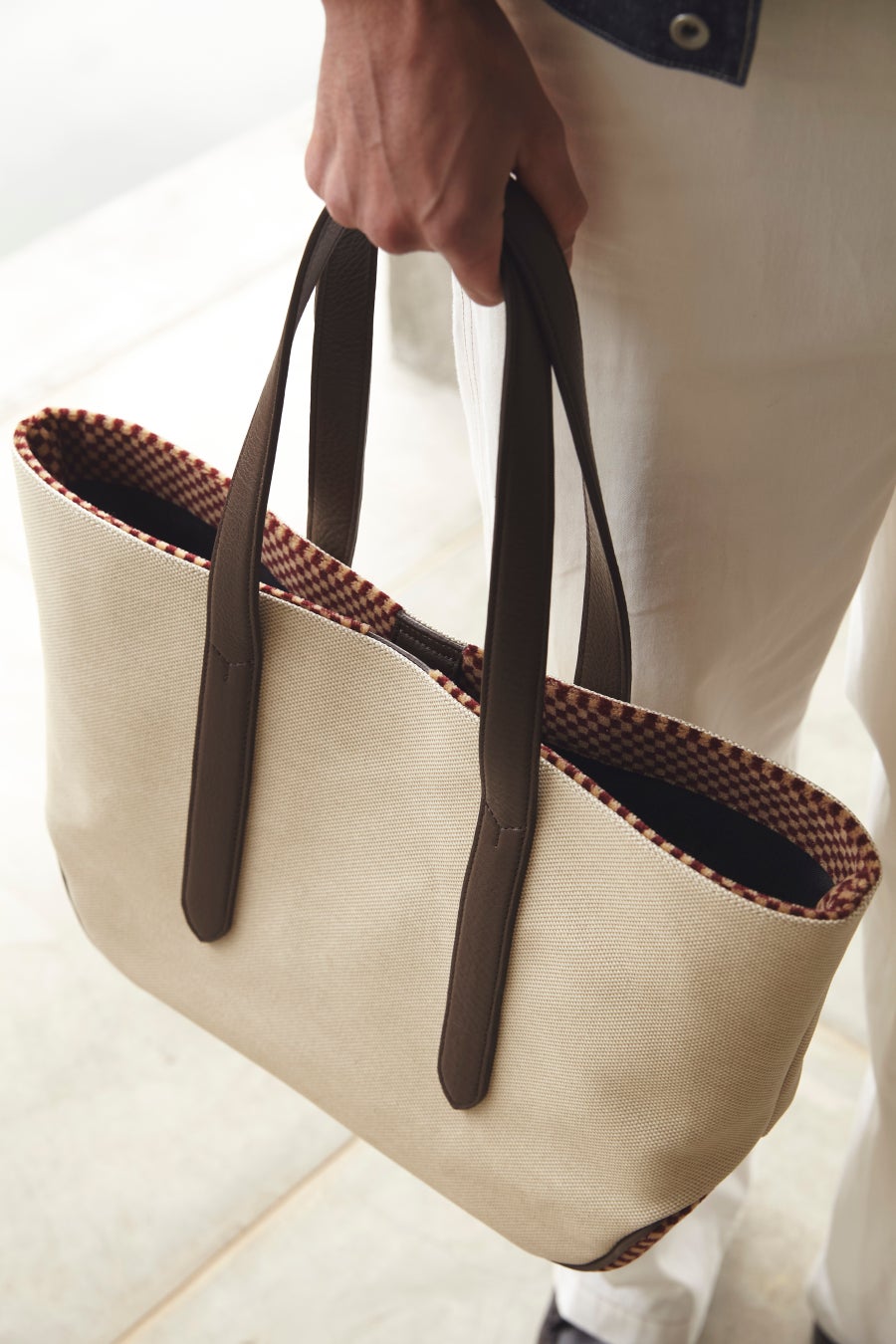 ・メイン素材にはPVCコーティングを施したコットンキャンバス地を使用。コーティングをすることでキャンバス地ですが、艶感があり上品な佇まいに。