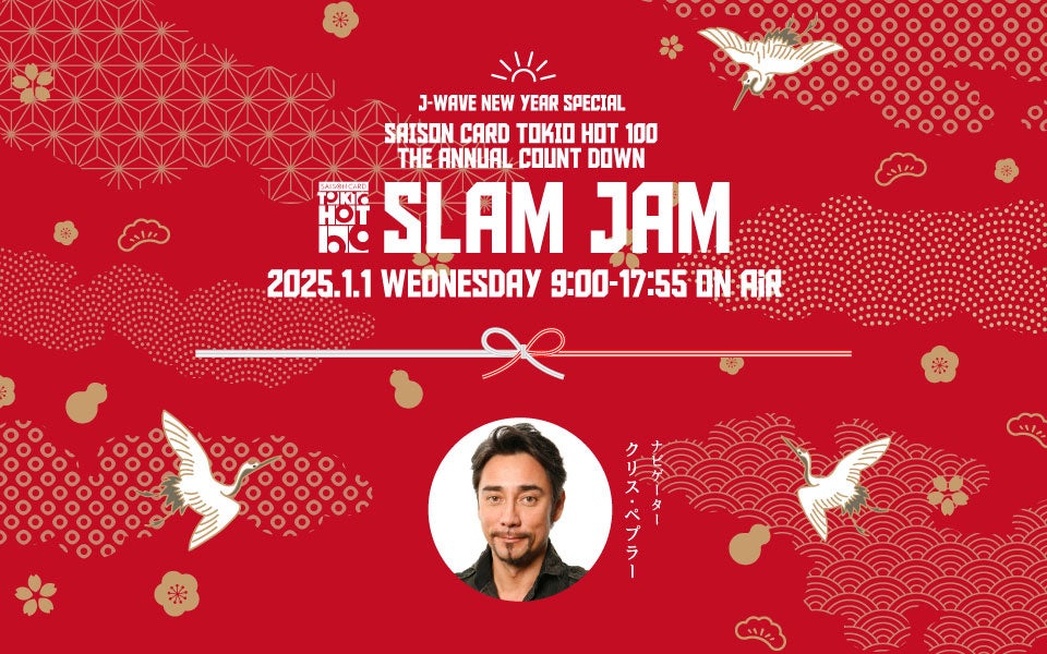 ラジオ局J-WAVE(81.3FM)では、2025年1月1日(水・祝)9:00~17:55、2024年の東京No.1ヒットソングを決める特別番組『J-WAVE NEW YEAR SPECIAL SAISON CARD TOKIO HOT 100 THE ANNUAL COUNT DOWN SLAM JAM』を、クリス・ペプラーのナビゲートで放送いたします。