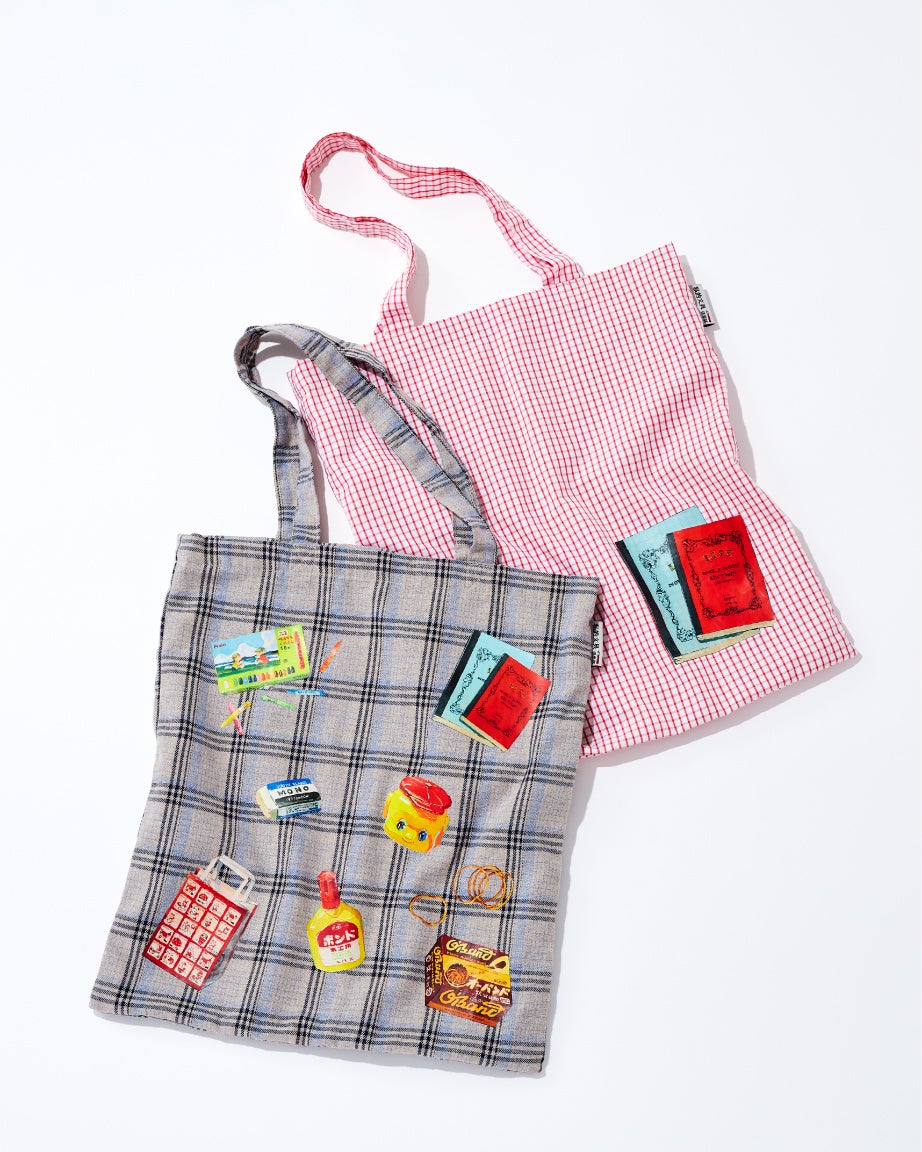 この度のコラボレーションは、「私的文具倶楽部」と題し「お気に入りの文具と一緒なら、毎日がちょっと幸せになる」をコンセプトに、トンボ鉛筆「MONO消しゴム」、フエキ「どうぶつのり」、コニシ「ボンド 木工用」、ぺんてる「ぺんてるくれよん」、共和「オーバンド」、シモジマ「ストップペイル袋」、ライフ「ノーブルノート」の馴染みのある7つの文具をモチーフに松永氏らしいタッチで描き起こし、ニコアンドで人気の雑貨にプリントしました。日常で使用する雑貨に、お気に入りの文具をプリントすることで毎日をきっとワクワクさせてくれるラインアップです。