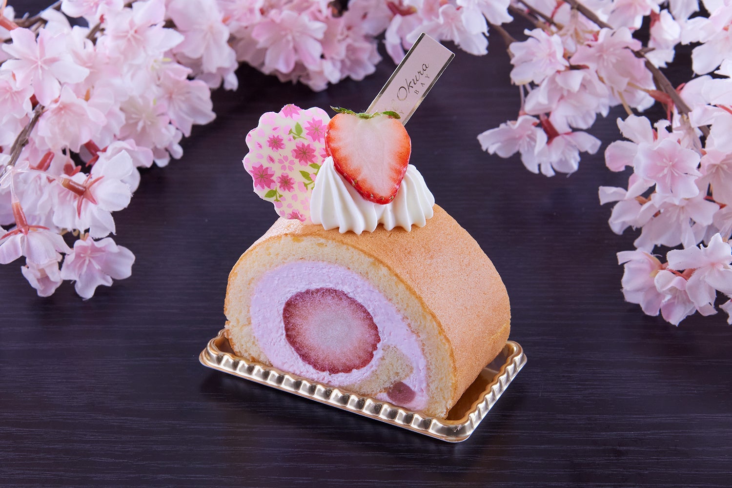 ふわふわの生地に桜風味の生クリームと桜餡を巻き上げたロールケーキ。甘酸っぱいいちごと合わせ春らしいスイーツに仕上げました。