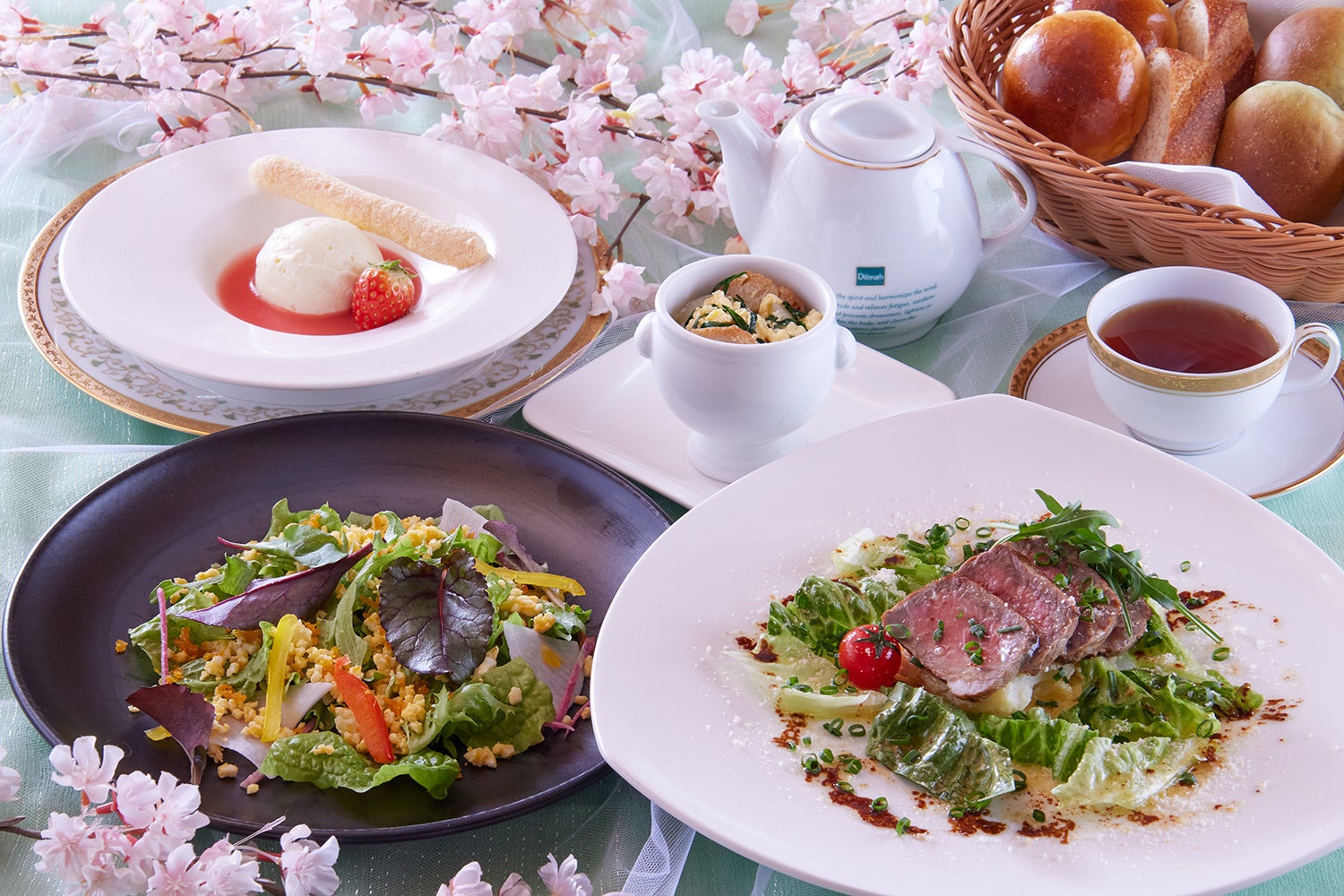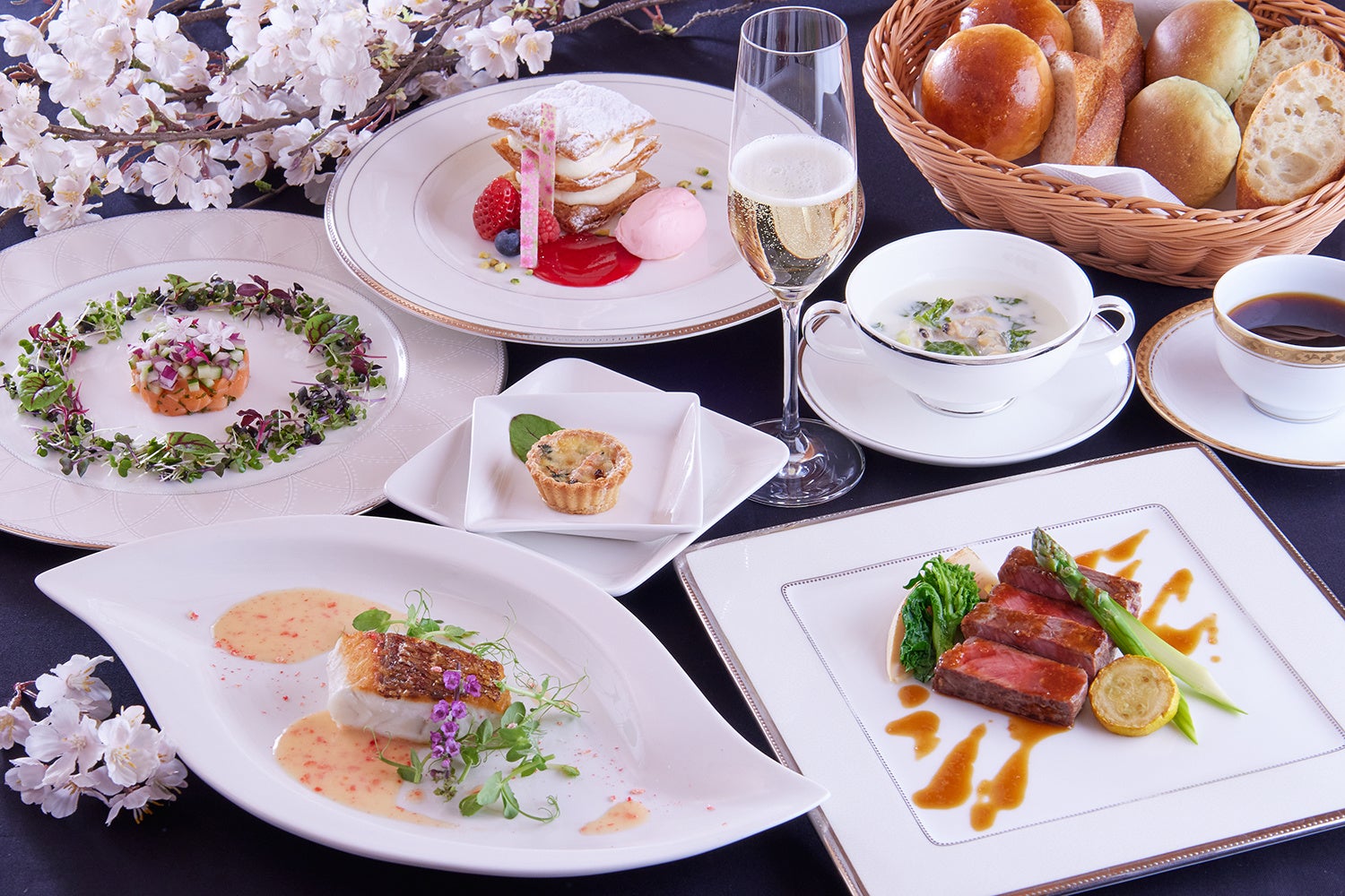 サーモントラウトのマリネ ガトー仕立てや、アサリと春野菜のクリームスープ、真鯛のポワレ 桜色のバターソースなど、桜の美しい季節にシェフがお届けする春らしいディナーコースをご用意しました。穏やかな春の訪れをお楽しみください。