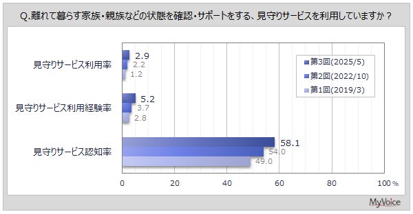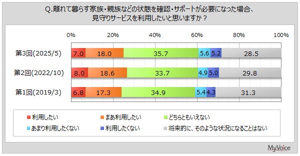 マイボイスコム株式会社(東京都千代田区、代表取締役社長:高井和久)は、3回目となる『見守りサービス』に関するインターネット調査を2025年5月1日~7日に実施しました。