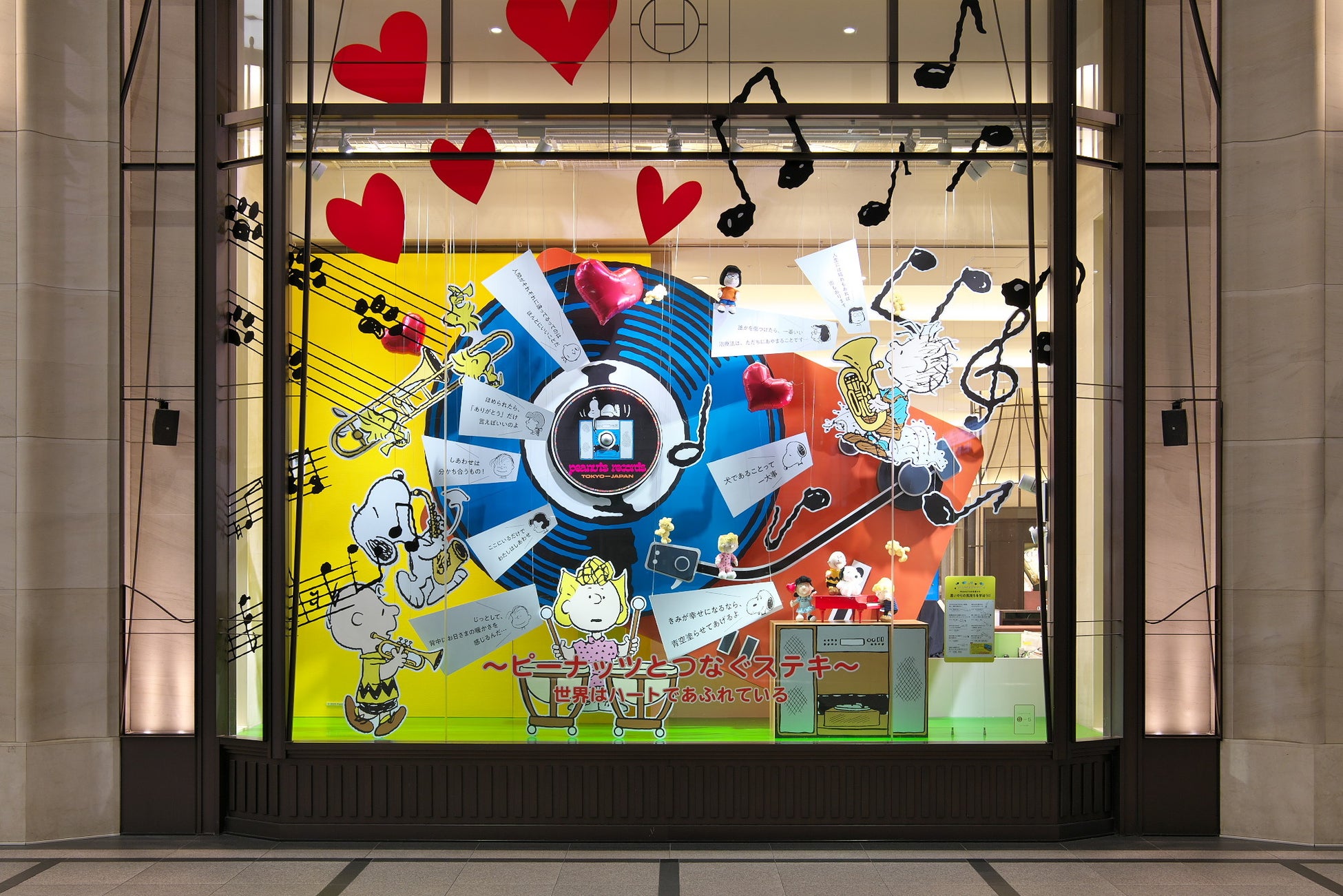 中でも、5号ウインドーの、禅の考えにも通ずる「PEANUTS」の名⾔を交えたディスプレイは注⽬です。