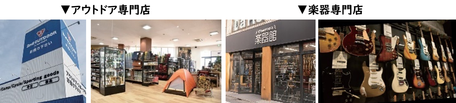 セカンドストリートには、アパレルやブランド、アウトドア、おもちゃの専門店など、特徴的なショップタイプが9つあります。