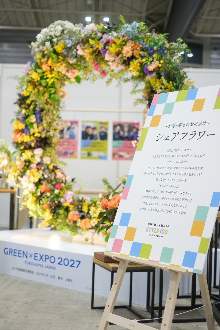 「“幸せのお福分け”シェアフラワーSTYLE」の第一弾として、5月3日(土)から5月5日(月)に開催された「横浜フラワー&ガーデンフェスティバル2025」にて、結婚式の装花をアップサイクルする来場者参加型イベント「幸せがめぐる、つながる シェアフラワーリング」を実施しました。
