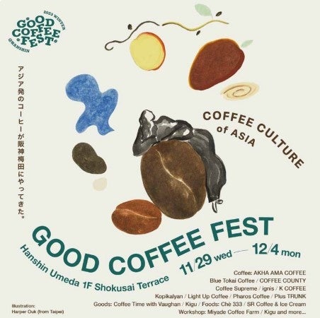 オンラインコーヒーガイドブック「Good Coffee」が国内外からセレクトしたコーヒーショップが集まるイベント『GOOD COFFEE FEST』。今回の「GOOD COFFEE FEST@HANSHIN 2023 winter」は“Coffee Culture of ASIA”をテーマに、近年注目を集めるアジアのコーヒーをクローズアップ。毎回好評の飲み比べ用ミニマグも、アジアンテイストの2023winter限定デザインで登場します。コーヒー好きが集結する人気のイベントを、ぜひご取材下さい。
