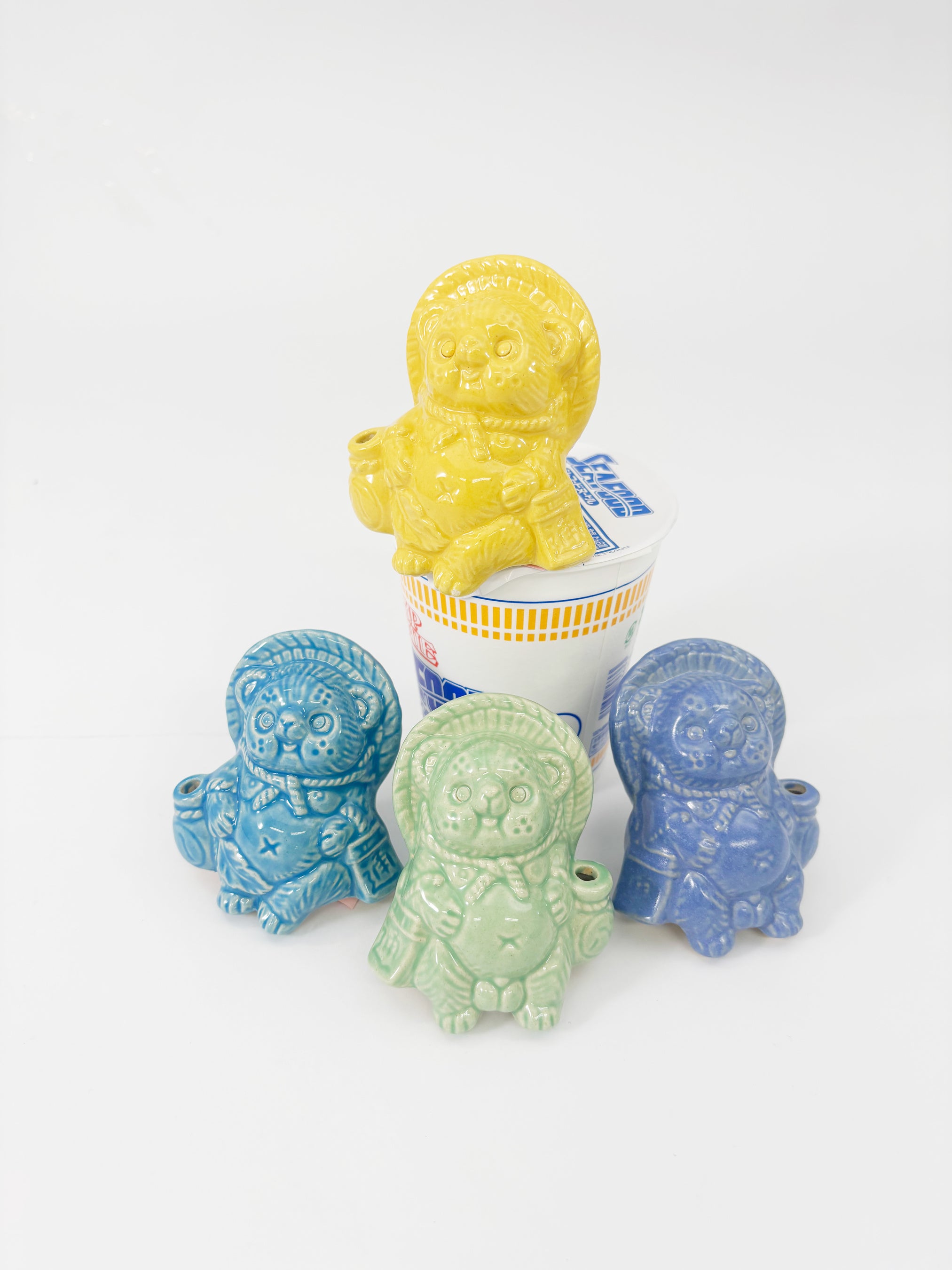 日本の伝統工芸・信楽焼から、どこでも“ちょこん”と座れる「腰掛けミニたぬき」がかわいく焼き上がりました。カップ麺のフタを押さえたり、デスクの端に腰掛けたり日常のそばで、そっと福を呼び込みます。