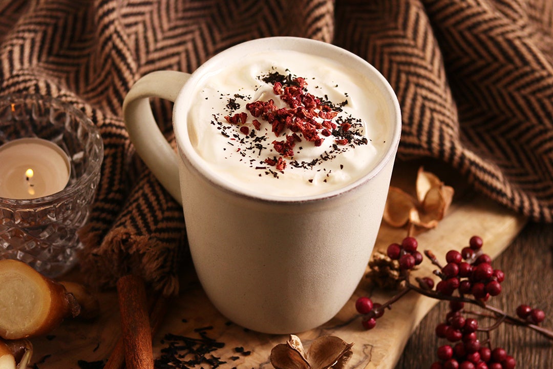 ほんのり甘く香るベリー風味のNo.9ミルクティーに、シナモン・ジンジャー・クローブのスパイスを効かせたシロップを合わせました。