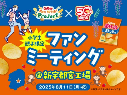 カルビー株式会社(本社:東京都千代田区、代表取締役社長兼CEO:江原 信)は、カルビーファンの皆さまと交流するCalbee『Fan With! Project』の一環として、2025年8月11日(月・祝)に栃木県宇都宮市の新宇都宮工場で「カルビーポテトチップス」発売50周年を記念した小学生親子限定ファンミーティングを開催しましたので、お知らせします。イベントには約30名のファンの皆さまに参加いただきました。