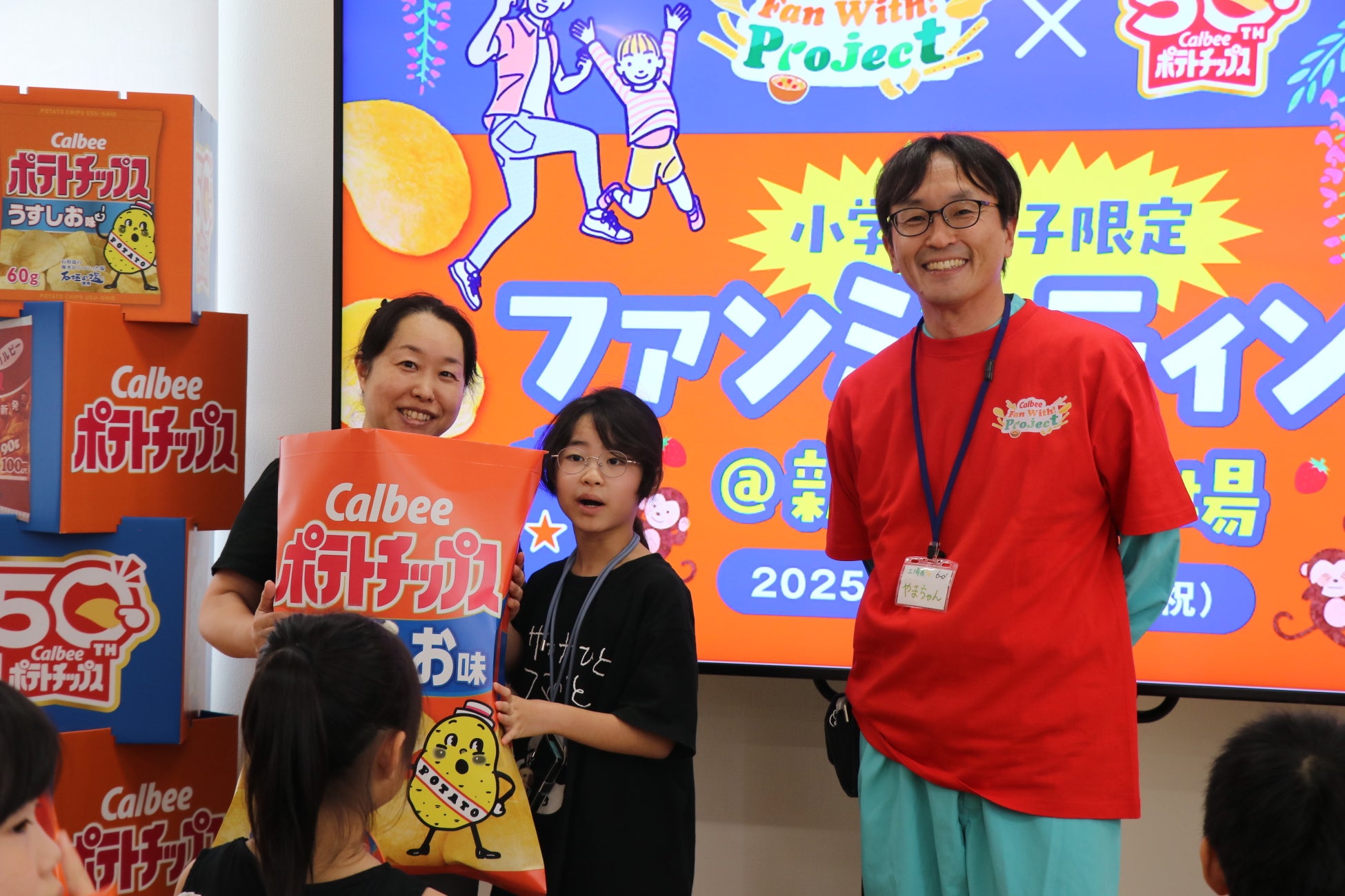 2025年度のCalbee『Fan With! Project』の第5回は、8月11日(月・祝)に栃木県宇都宮市の新宇都宮工場で小学生親子に向けたファンミーティングを実施しました。今年9月に「カルビーポテトチップス」が発売50周年を迎えることを記念し、ポテトチップスの製造工程の実況中継や、できたて商品の試食、レクリエーションなどをファン総勢約30名さまが楽しみました。