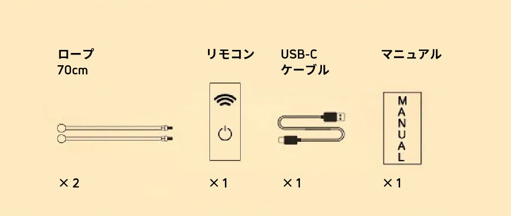 - リモコンとUSB-Cケーブルが付属。スムーズな操作と充電式コンパクト仕様で保管や設置も簡単