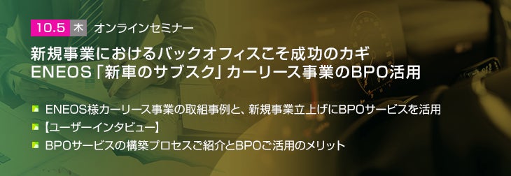 【トランスコスモスオンラインセミナー】新規事業におけるバックオフィスこそ成功のカギ ENEOS「新車のサブスク」カーリース事業のBPO活用を10/5(木)に開催