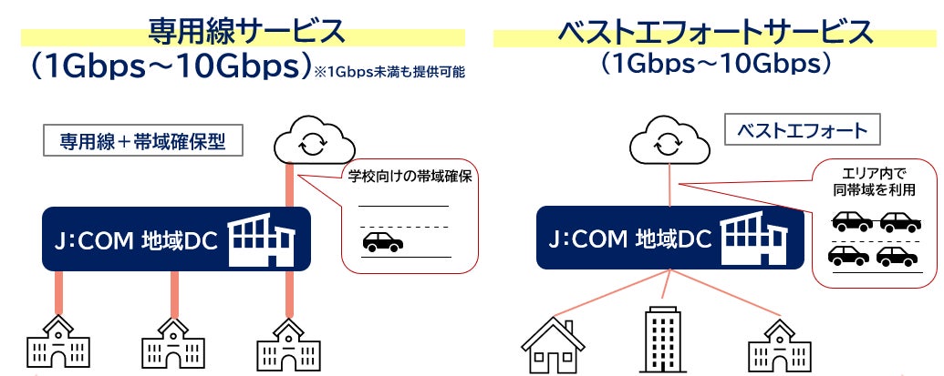 専用線サービスとJ:COMベストエフォートサービスの2種を提供可能。ご要望に応じて回線種別を選択でき、安定したネットワーク品質を実現。エリアごとに独立したネットワークが構築できるのは“地域密着”型のCATV事業者だからこその強みです。
