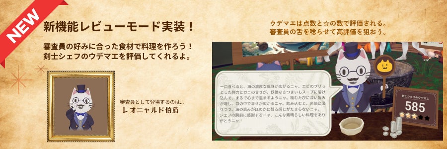 「レビューモード」では、AI鍋が生成した異世界ファンタジー料理を、AI猫の審査員がレビュー&評価する という、非常に斬新かつ唯一無二となる、この世で類を見ない新機能となっております。