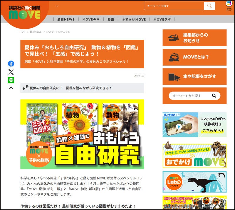 ■講談社の動く図鑑MOVEのWebサイトで自由研究テーマ紹介
