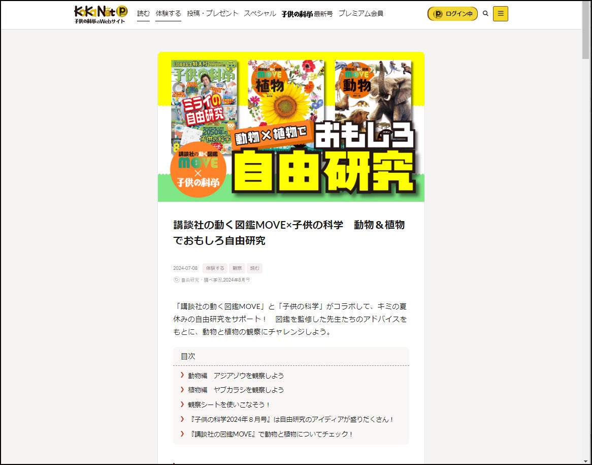 株式会社誠文堂新光社(東京都文京区)が発行する小中学生向け科学誌『子供の科学』と、株式会社講談社(東京都文京区)が発行する講談社の動く図鑑MOVEは、本日より夏休みの自由研究コラボキャンペーンを開催。