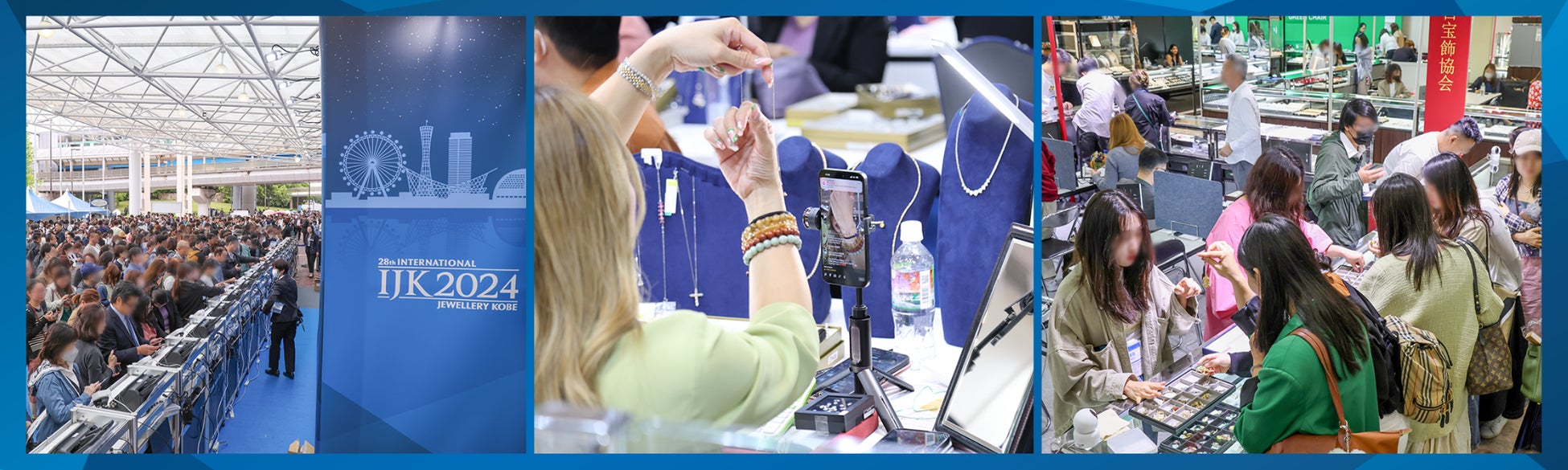 神戸国際宝飾展[通称:IJK]は、西日本最大※1の宝石の祭典として、あらゆる種類のジュエリー・アクセサリーが一堂に集結し、『実際に見て、比べて、特別価格で仕入れができる』展示会。宝飾卸・メーカーが出展し、バイヤー、宝飾品ビジネスに関心のある方、ハンドメイド作家・クリエイターが仕入れやブランド導入を行います。昨年(2024年)は13,674名が来場し、今年は14,000名が来場予定です。第29回を迎える本展には460社が出展予定で、過去最大規模の開催となります。88万点のジュエリー、50万点の素材・パーツが出展予定ですので、ぜひ本展を仕入れの場としてご活用ください。