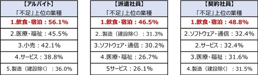 【図1】雇用形態別「不足」上位の業種 ※上位一部抜粋
