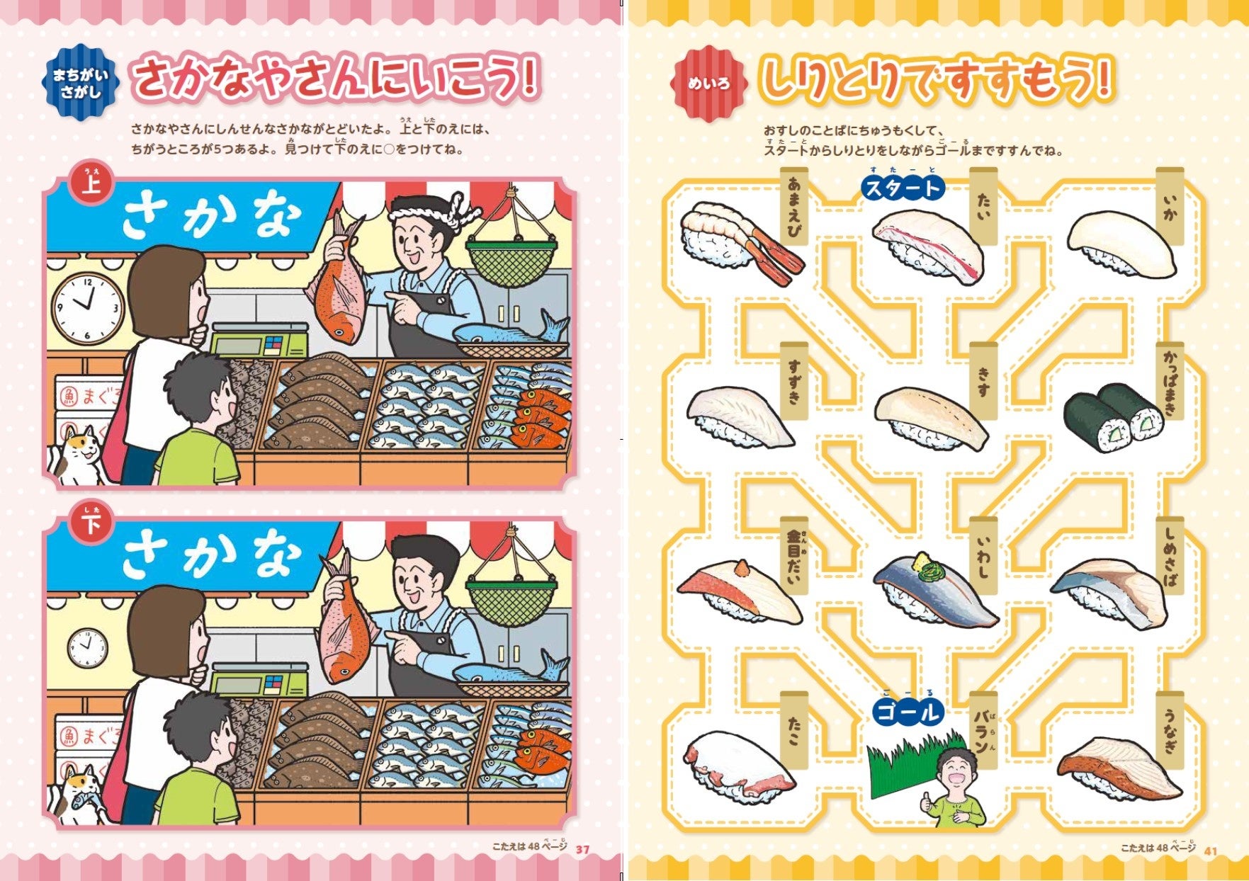 誌面では、「おすしができるまで」やご当地お寿司を紹介する「こんなおすししってる?」、さらにお寿司クイズやまちがいさがし、迷路などを掲載。子どもはもちろん親子で楽しめ、お寿司がもっと好きになる内容が盛りだくさんです。