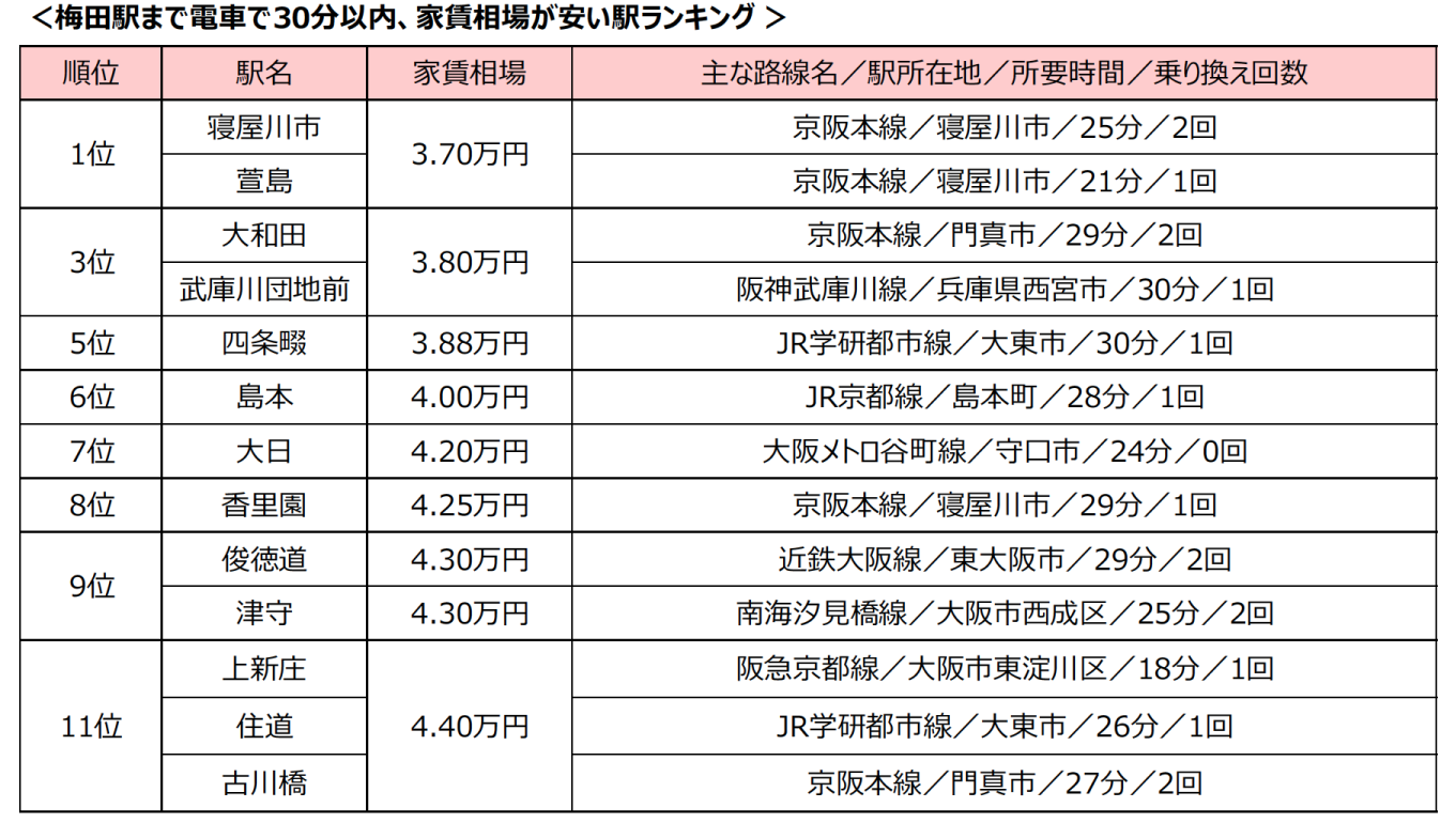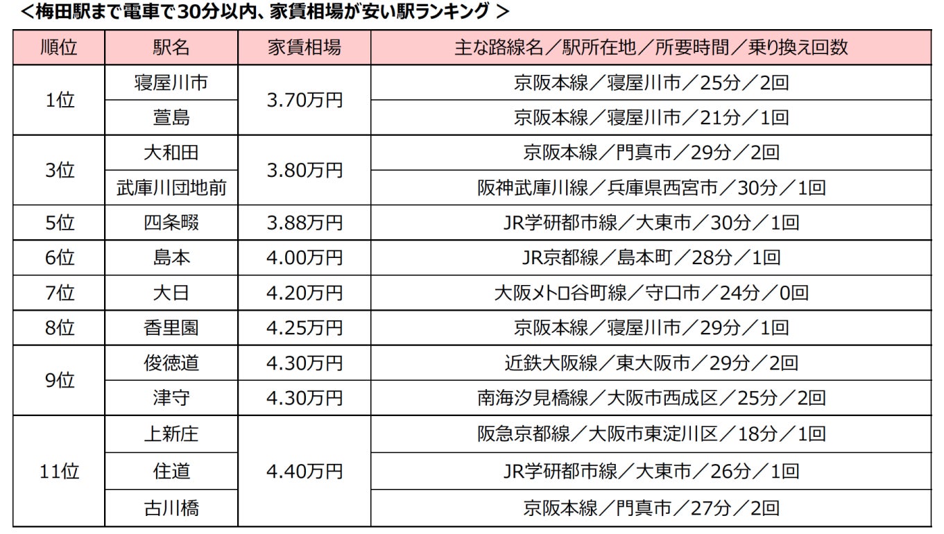 3万円台で住める!?梅田駅まで電車で30分以内、家賃相場が安い駅ランキング ベスト3は京阪本線の駅がランクイン