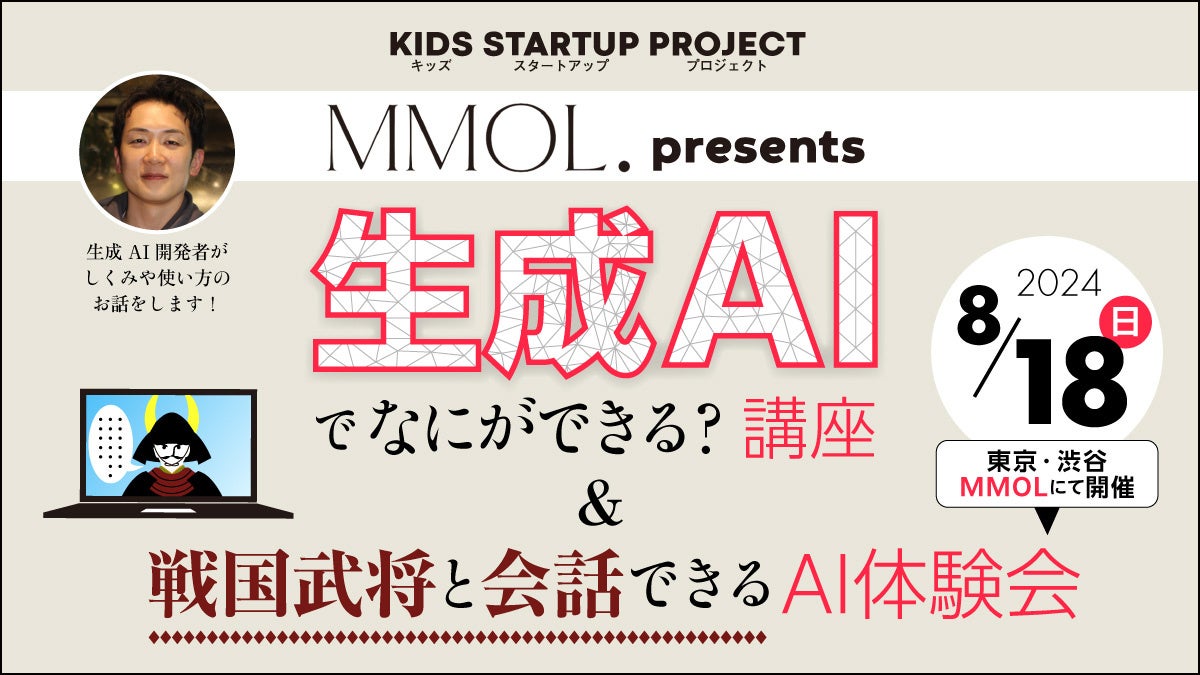 2024年8月18日(日)、100周年パートナーで生成AIの開発を手掛けるMMOL(ミリモル)ホールディングスの協力のもと、『「生成AIでなにができる」講座 & 戦国武将と会話できるAI体験会』を東京・渋谷のMMOL社にて開催します。