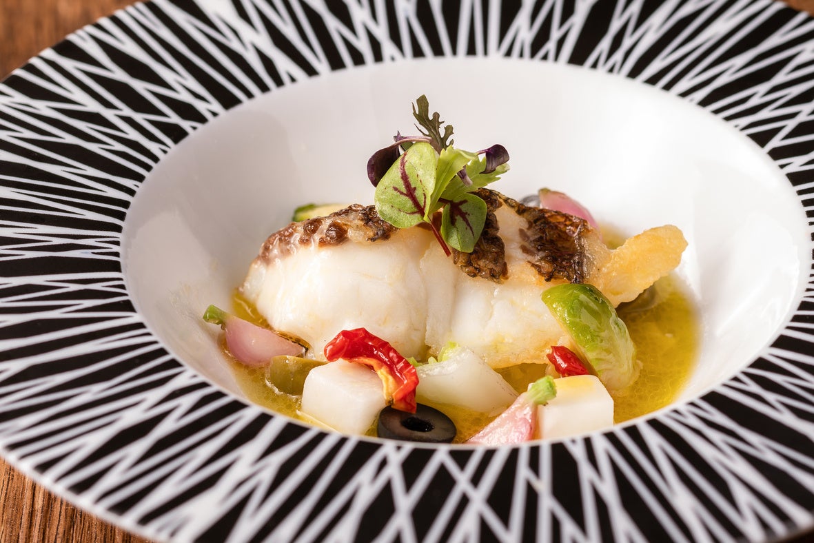 旬の真鱈を白ワインと魚出汁で蒸し焼きにし、煮汁を煮詰めてクリームとソース・オランデーズで仕上げました。真鱈のぷりぷり食感と濃厚なソースの組み合わせが特徴の一皿です。