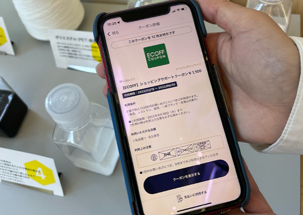 お客様にはお引き取り1点につきアプリでお渡しの「アプリクーポン(1,100円分)」1枚、または紙の「ショッピングサポートチケット(1,000円分)」をお渡しします。今回も、紙資源の削減を推進するためアプリクーポン額を1,100円とし、デジタルでのクーポン利用を推進しております。