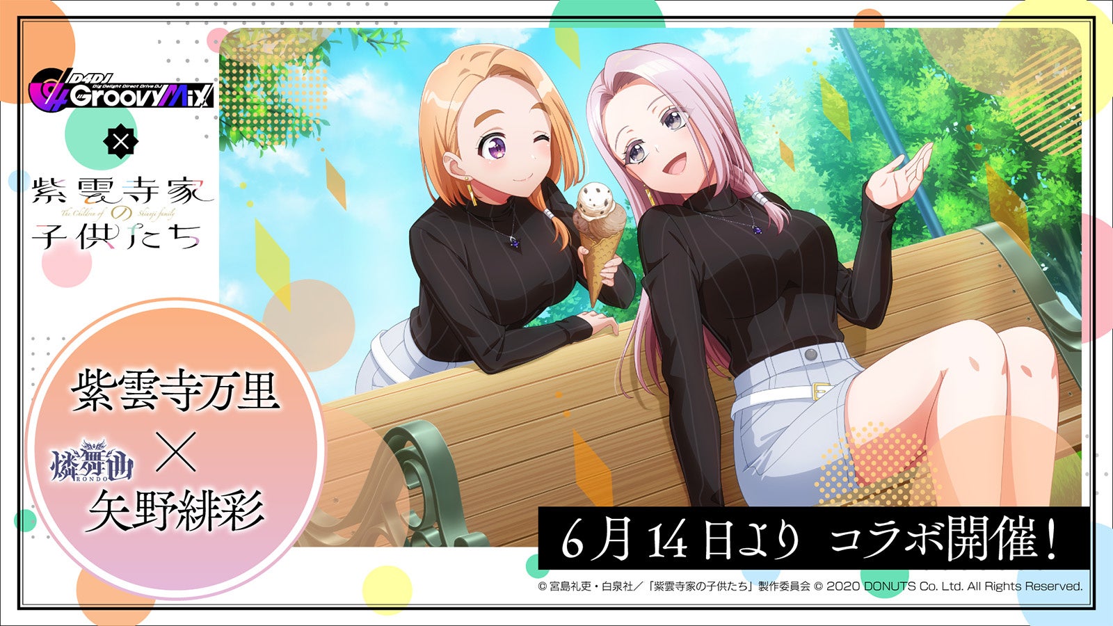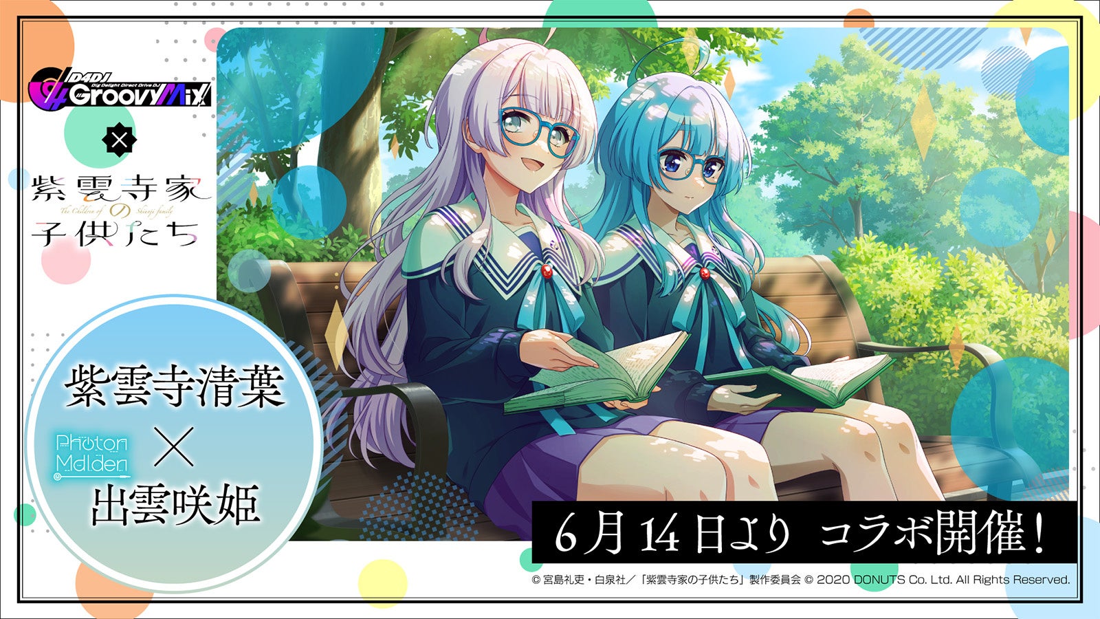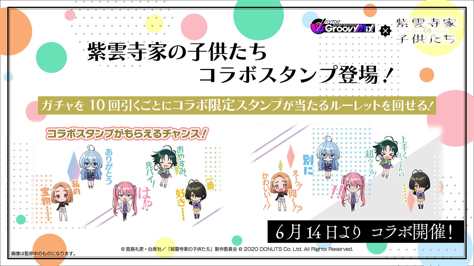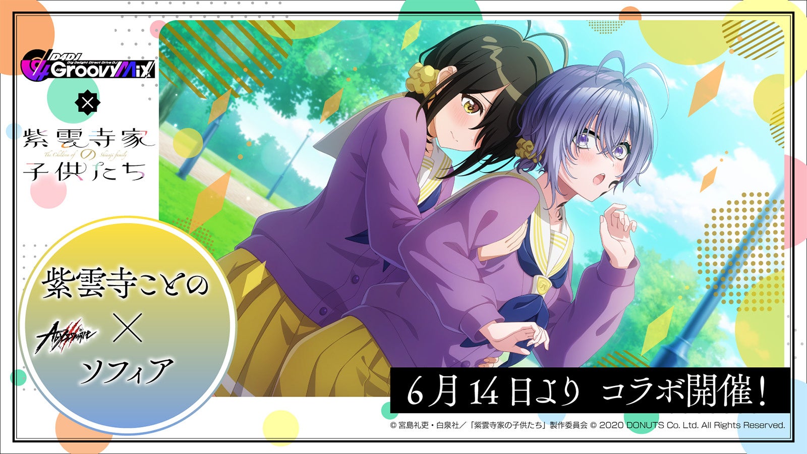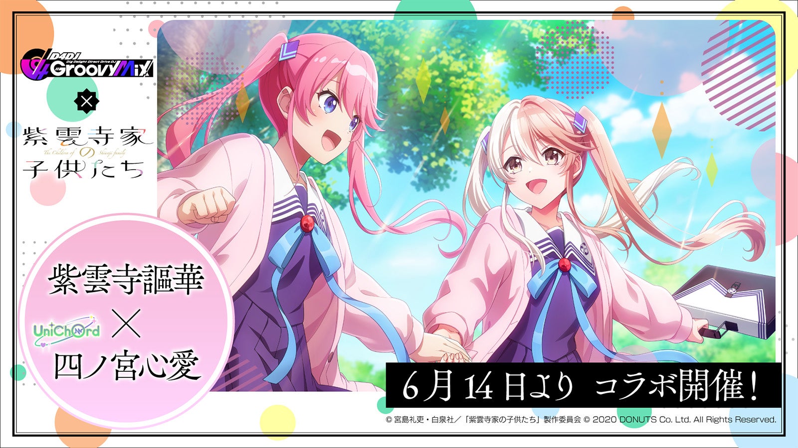 株式会社DONUTS(東京都渋谷区、代表取締役:西村啓成)は、スマートフォン向けリズムゲーム「D4DJ Groovy Mix」(以下グルミク)にて、TVアニメ『紫雲寺家の子供たち』とのコラボイベント&ガチャ「紫雲寺家の子供たち × D4DJ -Party in the Shiunji family-」を6月14日(土)12:00より開始いたします。