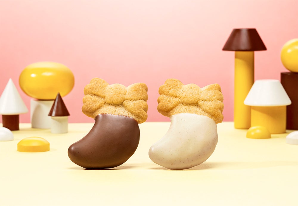 ぷっくりシルエットが可愛すぎるチョコバナナクッキー。リボンをつけた東京ばな奈デザインのぷっくり分厚いバナナクッキーに、チョコレートの美味しさをとろりとかけた『東京ばな奈のチョコバナナクッキー』。Doleブランドのおいしいバナナを合わせた特製バナナバターを生地に練りこんで、サクサク食感に焼きあげました。「もったいないバナナ(※)」パウダーを使った、食べるほど SDGs に貢献できるとっておきのバナナクッキーです。