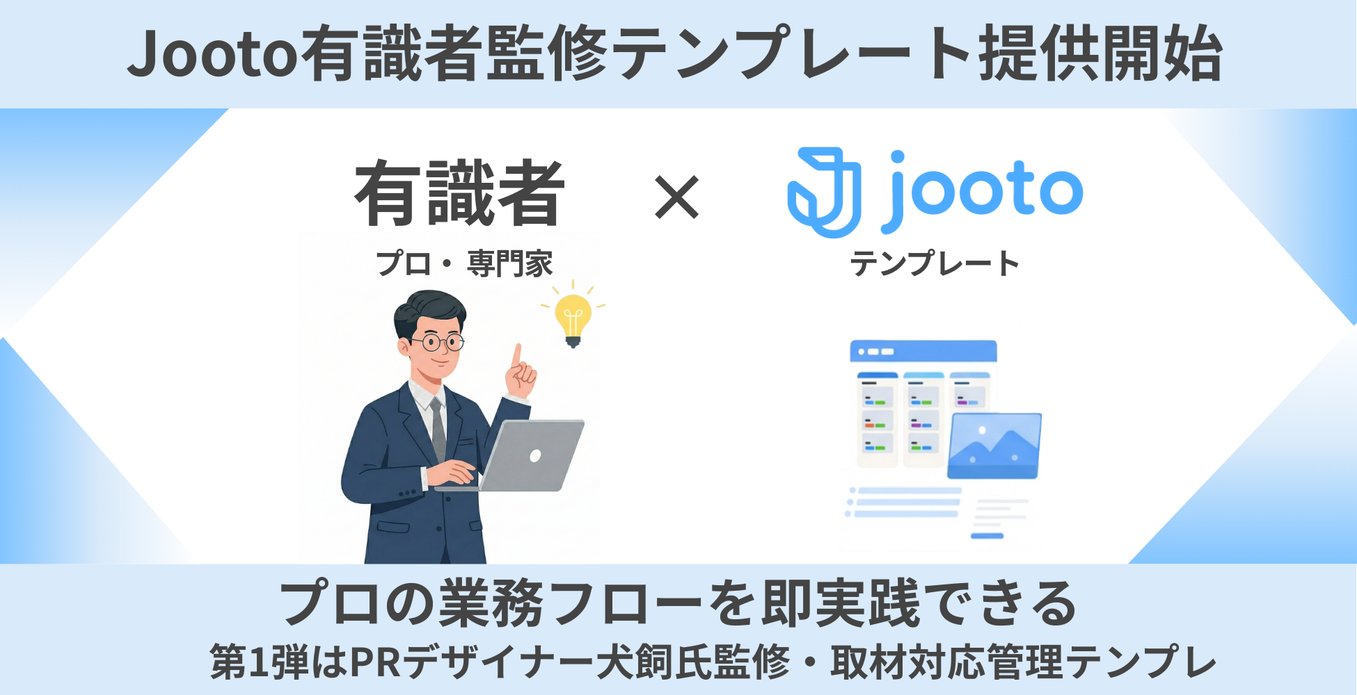 株式会社PR TIMES(本社:東京都港区、代表取締役:山口 拓己、東証プライム・名証プレミア:3922)が提供するタスク・プロジェクト管理ツール「Jooto」(読み:ジョートー)は、各種実務の最前線で活躍する専門家の知見をもとに業務フローをテンプレート化する「有識者監修テンプレート」の提供を2026年3月5日(木)より開始しました。