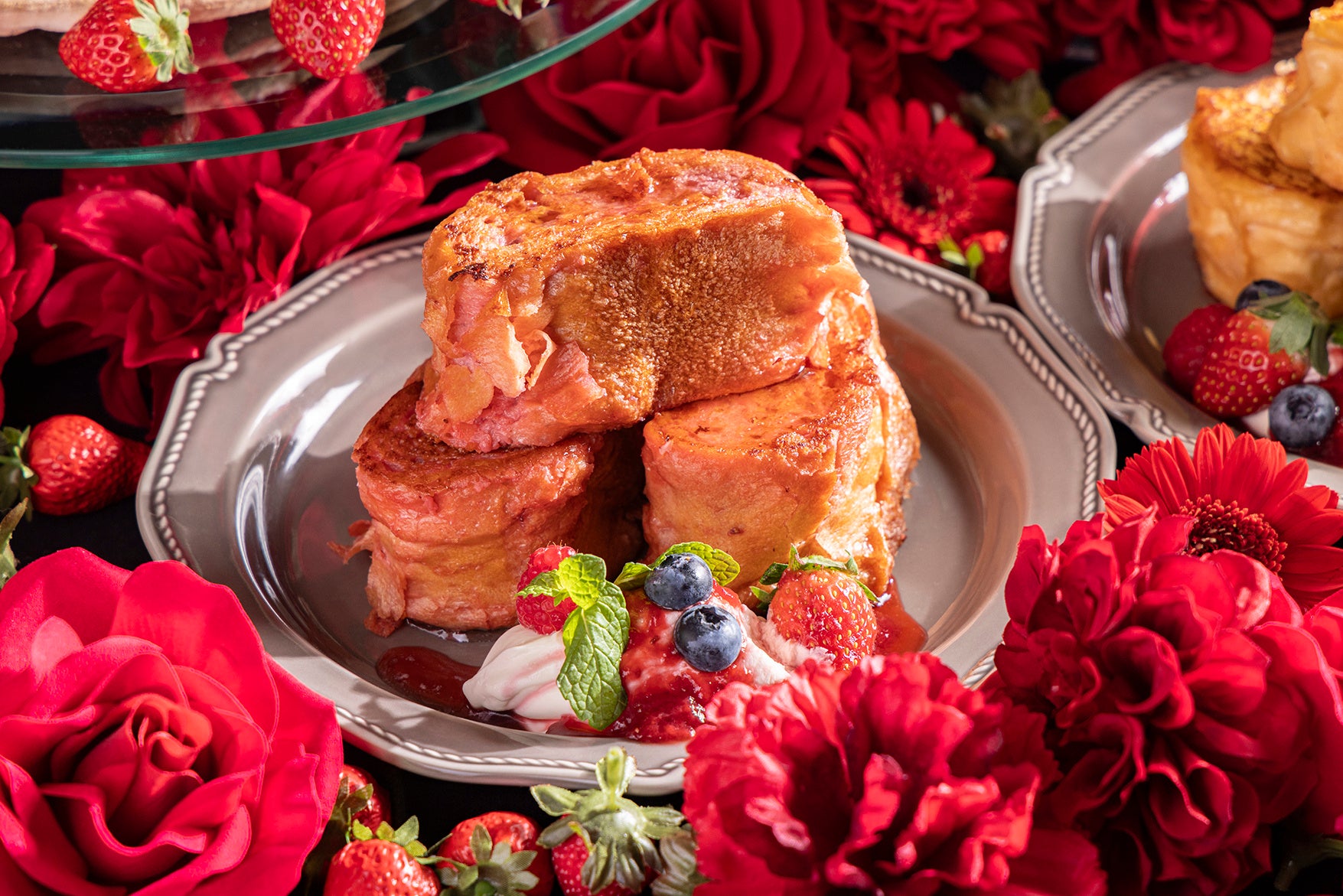 ヒルトン成田のシグネチャーメニュー、しっとりふわふわの「フレンチトースト」にも限定のストロベリーフレーバーが登場します。甘酸っぱい香りに包まれながら、贅沢な苺の饗宴をご堪能ください。