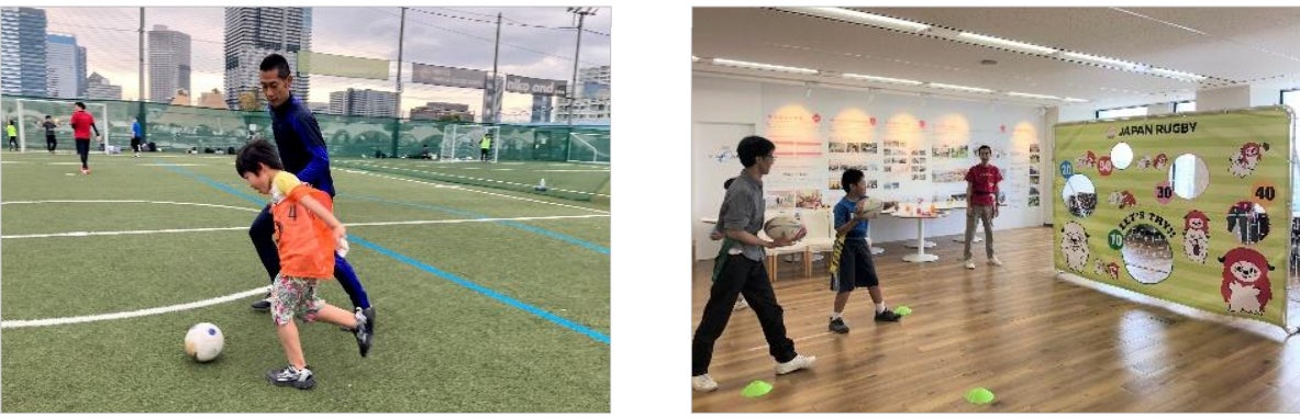 ▲(右)「ラグビー体験会&スポーツ選手の夢キャリア教室」
