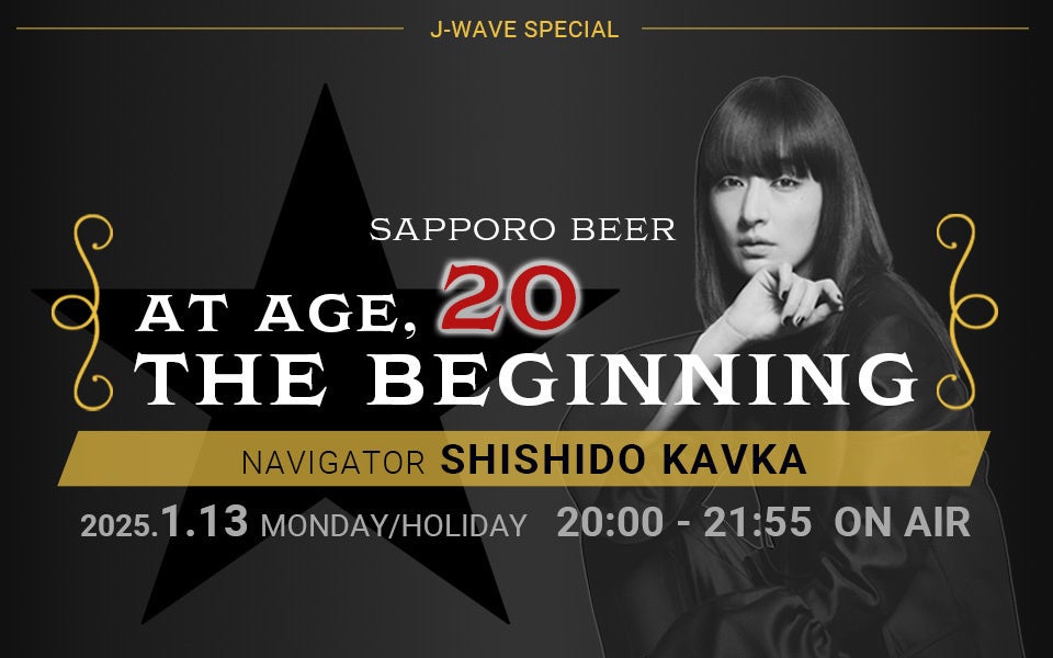 ラジオ局J-WAVE(81.3FM)では、2025年1月13日(月・祝)の成人の日に特別番組『J-WAVE SPECIAL SAPPORO BEER AT AGE 20, THE BEGINNING』を20:00~21:55の時間帯で放送します。本番組では「20歳」をテーマに、人生の大きな節目を迎えた方々へエールを送ります。