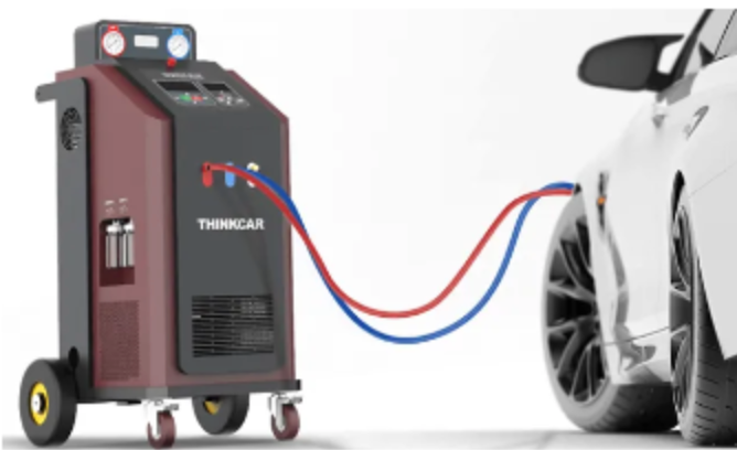 THINKCAR AC100は、冷媒の回収、充填、真空引き、および冷媒ラインの洗浄を効率的に行うためのインテリジェントA/Cサービスステーションです。134aと1234yfの2種類の冷媒に対応し、自動制御パネルを備えたユニークなデザインで、A/Cメンテナンスをより簡単に、そして高精度に行えます。