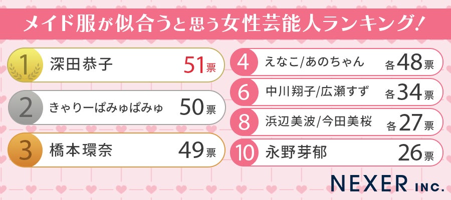 株式会社NEXER・メイド服が似合うと思う女性芸能人に関する調査