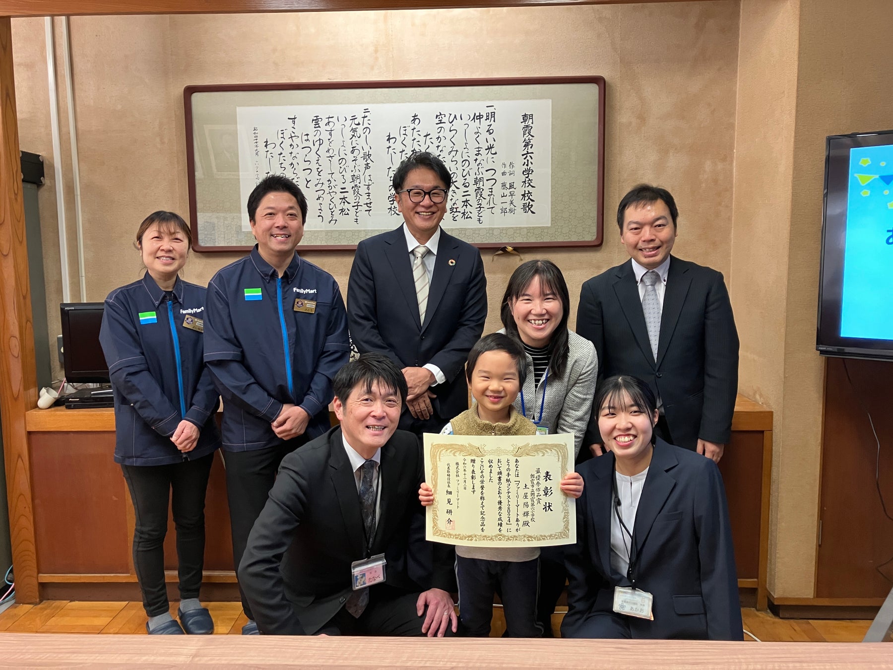 朝霞市立朝霞第六小学校での表彰式には、近隣のファミリーマート朝霞本町一丁目店の佐藤オーナーと吉永マネジャーが表彰式に出席し、受賞の喜びを分かち合いました。こうした地域交流の場として「ありがとう」という温かい言葉が地域全体に広がることも、本活動の特徴の一つです。