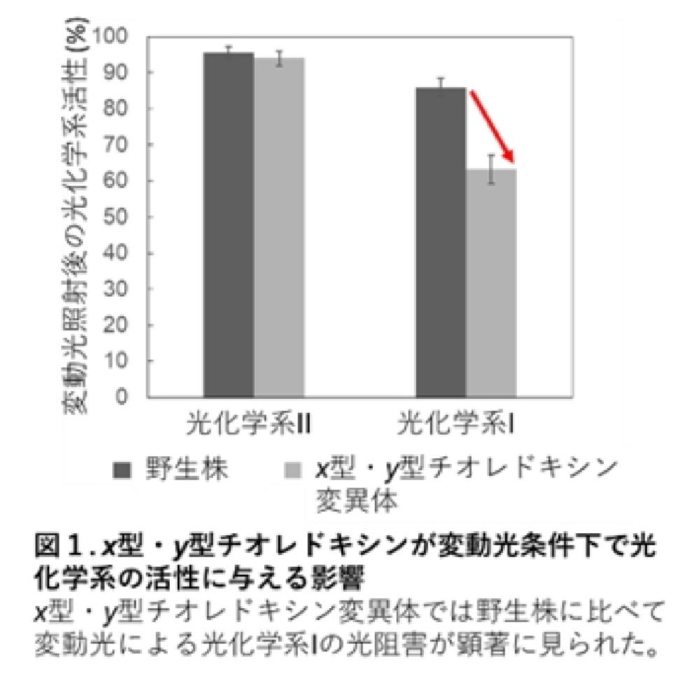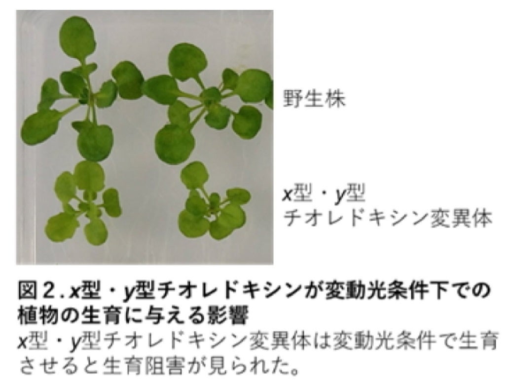 今回、シロイヌナズナのチオレドキシンタンパク質を欠損した変異体を使って、変動する光環境下で光合成活性を測定しました。その結果、チオレドキシンが変動する光ストレス環境条件で光合成装置を守り、これが変動する光環境下での植物の成長に必要であることが明らかになりました。