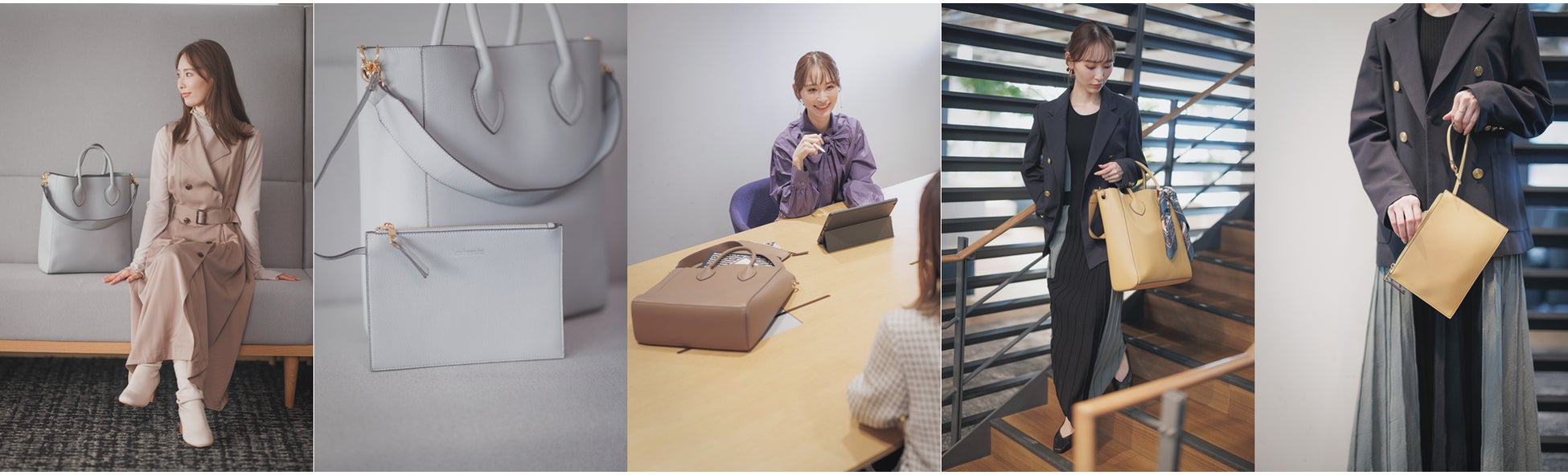 上品に効かせたゴールドパーツや配色デザインでシンプルな中に凛とした大人の雰囲気のあるバッグです。仕事に欠かせないPCや資料を楽々収納できる大容量を実現しながらも、使い勝手の良い軽さと、急な打ち合わせや会食にも対応できる高見えする生地素材を採用し、バッグを手にしたときの高揚感も重視しました。取り外し可能なショルダーベルトは、“サマ”になる長さと持ちやすさを兼ね備え、ちょっとした小物をスマートに収納するバッグインバッグも付属することで、ファッション性と使用感のバランスにこだわっています。
