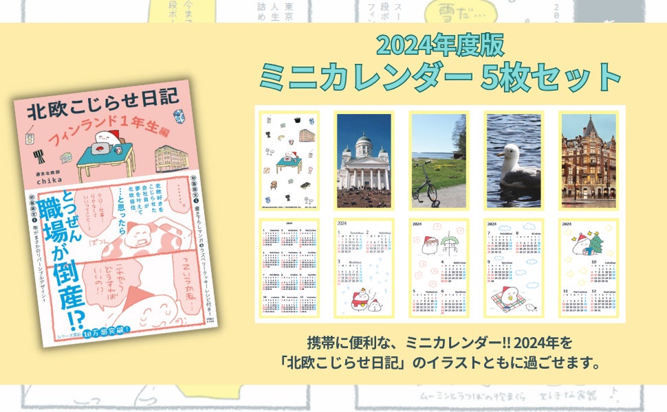 対象店舗で、書籍『北欧こじらせ日記 フィンランド1年生編』(定価 1,540円 ・税込)をご購入いただいた方には、オリジナル・ミニカレンダー(2024年度版)をプレゼントします。