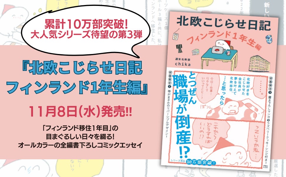 <初版&書店限定特典も‼> 累計10万部突破、大人気シリーズ待望の第3弾『北欧こじらせ日記 フィンランド1年生編』11月8日(水)発売