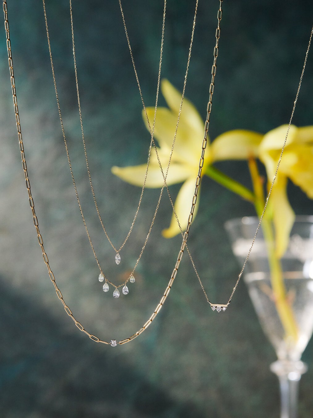 (左内側)ペアシェイプホールダイヤ5ピースネックレス0.31ct K18 ¥140,800