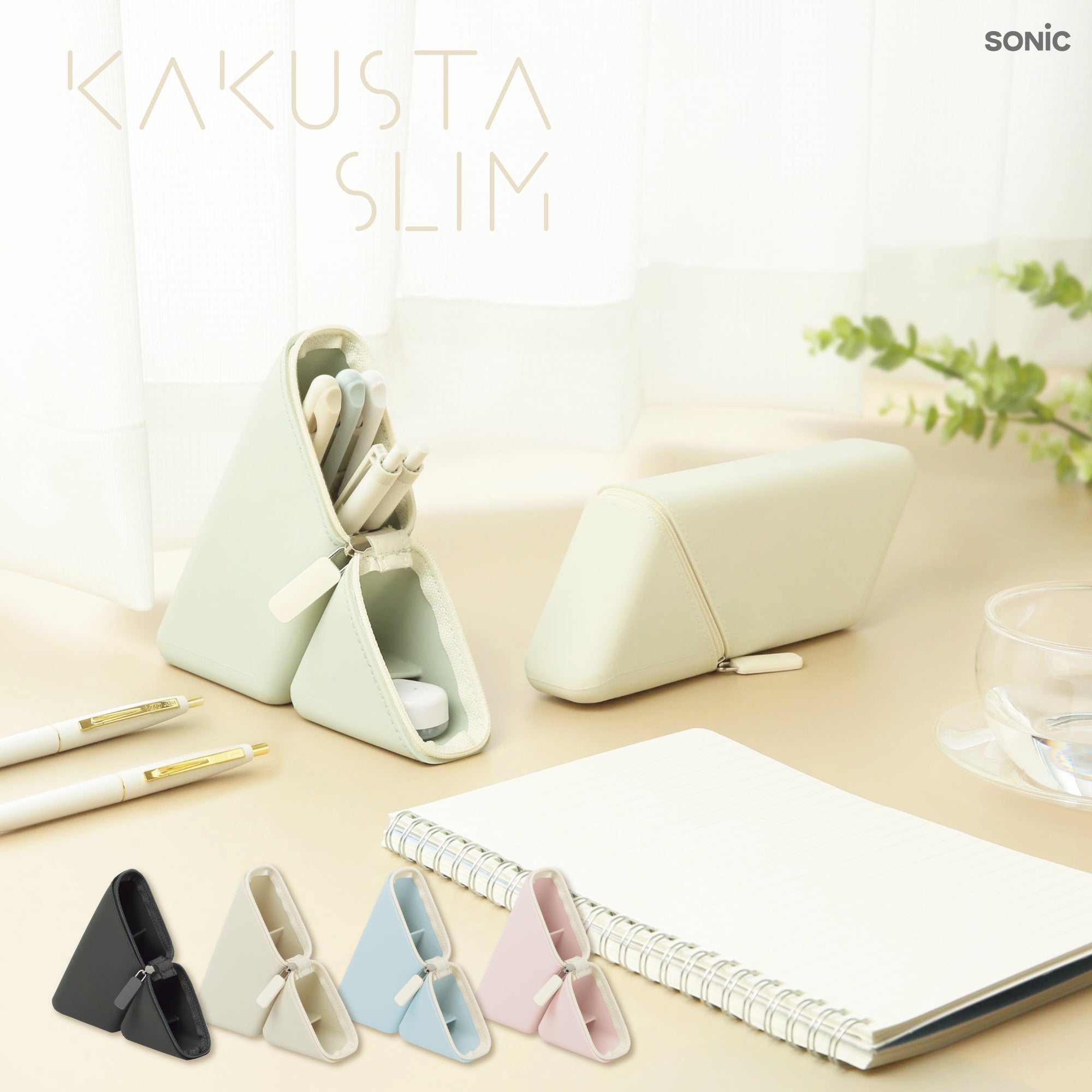 デスクの上で立ててペン立てのように使えるシリコン素材のペンケース「カクスタ」にスリムタイプが新登場。