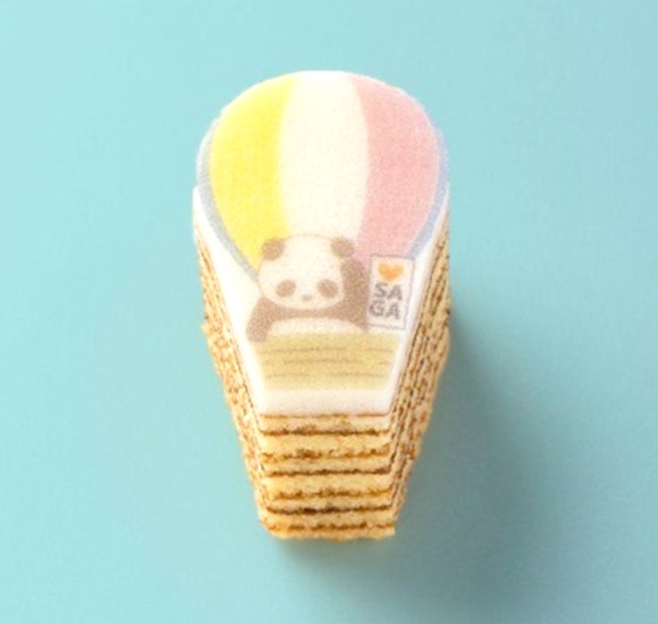 卵とアーモンドがふんわりと香るプレーン生地を、丁寧に焼き重ねた平焼きバウム。いちばん上の真っ白生地をキャンバスにして、バルーンフェスタのバルーンにのるパンダのプリントとカットをほどこしました。バルーンの柄は全部で5種類。何が出るかワクワク感もあわせてお楽しみください。