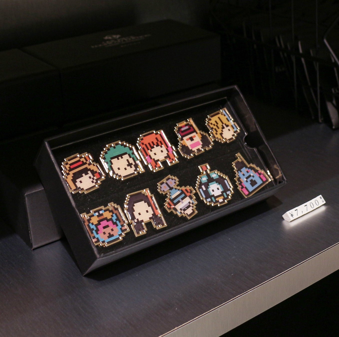 麦わらの一味をピクセルアートで表現したトレーディングピンバッチのコンプリートセット。