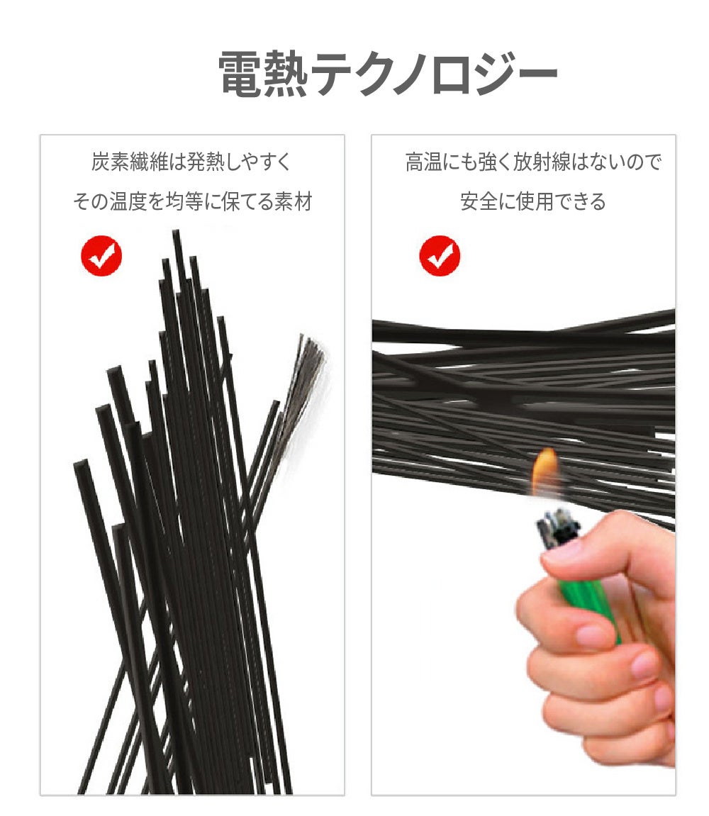 炭素繊維は熱伝導性が高く発熱までの時間が短いため、あっという間に熱を持つことができます。