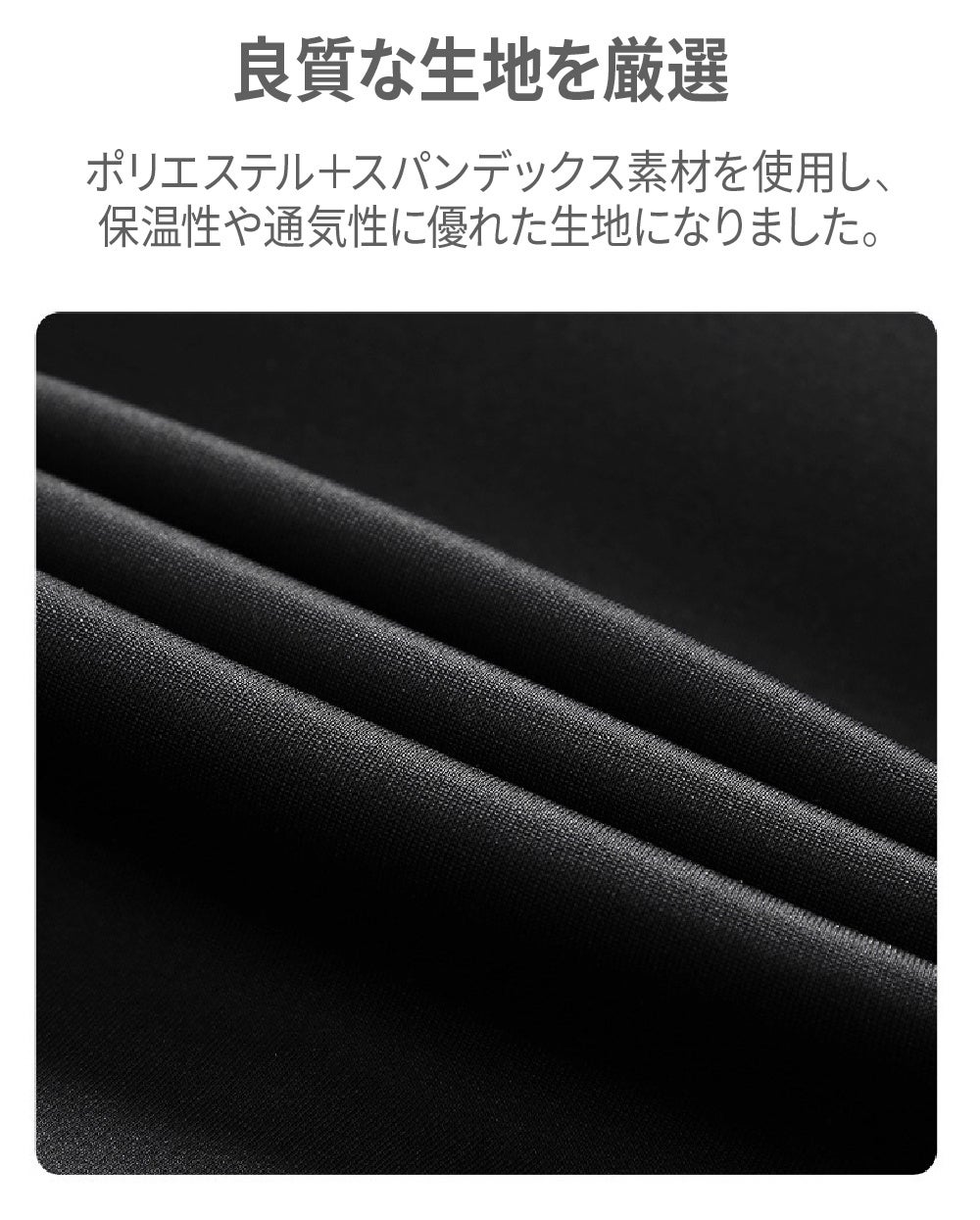 使用されているポリエステルとスパンデックスの生地は保温機能の高さはもちろんのこと、通気性が良く、生地自体に弾力があるのでストレッチも効きます。