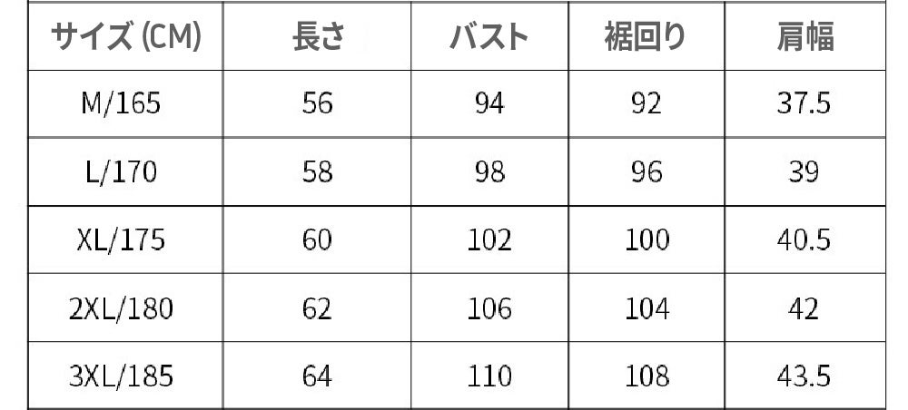【保温・防風/39度〜60度まで三段階の温度調節可能/Mから3XLまでの豊富なサイズ展開/もみ洗い可】