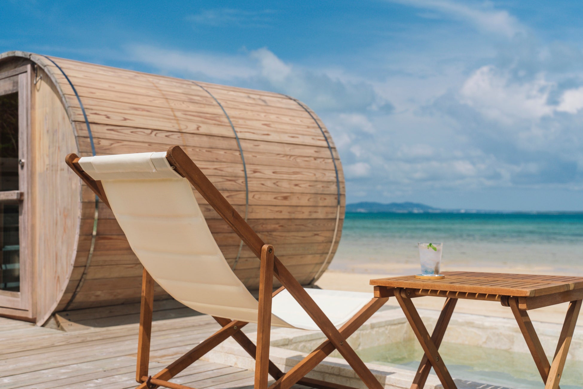 リゾナーレ小浜島のバレルサウナは、海に面した大きな窓が特徴です。窓から碧い海の絶景を望み、体を温めます。また小浜島の冬の平均気温は18度以上(*2)と、本州の冬よりも温暖なため、サウナ後の外気浴は肌寒すぎず、身体を芯から「ととのう」のに適した温度です。南国の景色や気候を満喫しながらゆったり過ごせる、大人だけのくつろぎ時間です。