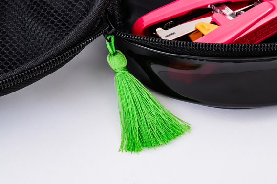 - 透け感のある側面とタッセルがポイント!