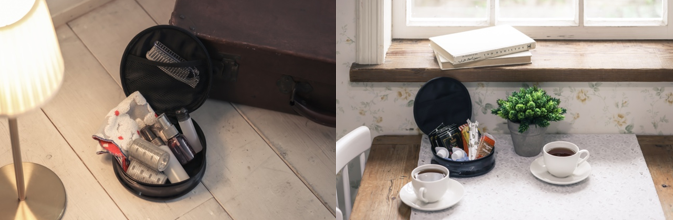 お部屋の収納としても持ち運びポーチとしても優秀です。